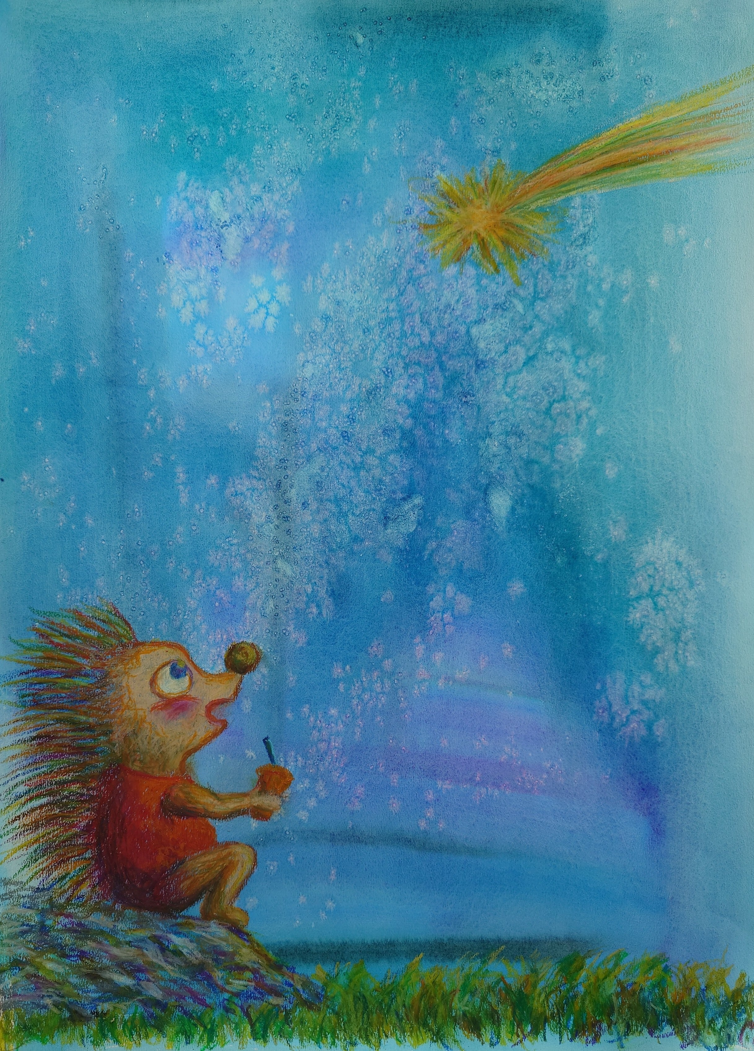 流れ星を発見してワクワクのハリネズミさんです